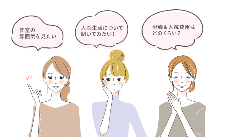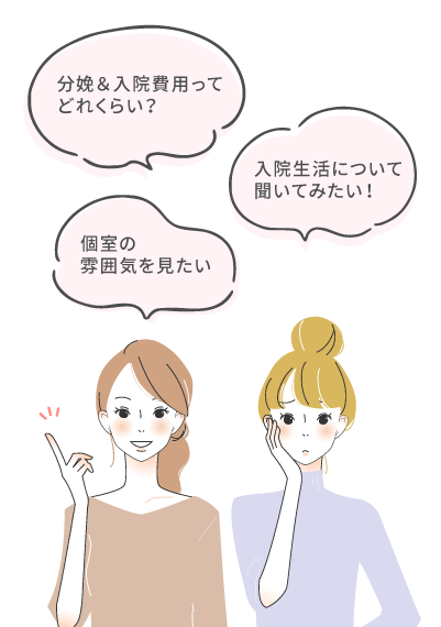 ●内容 院内のご案内、その他ご相談・ご質問(妊婦健診、エコー、各種検査、出産準備、バースプラン、入院時の持ち物、立会い分娩、出産費用についてなど)