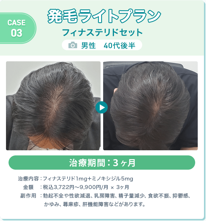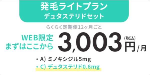 - ※発毛ライトプラン デュタステリドセット 定期便12ヶ月ごとを選択した場合に適用。総額36,036円(別途送料550円)