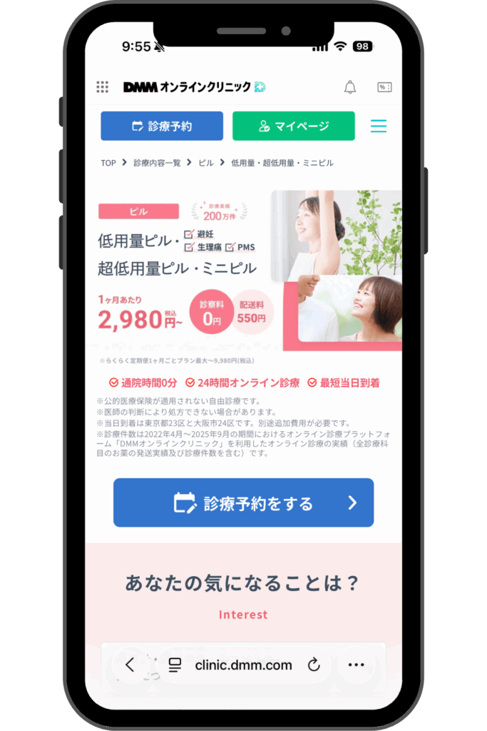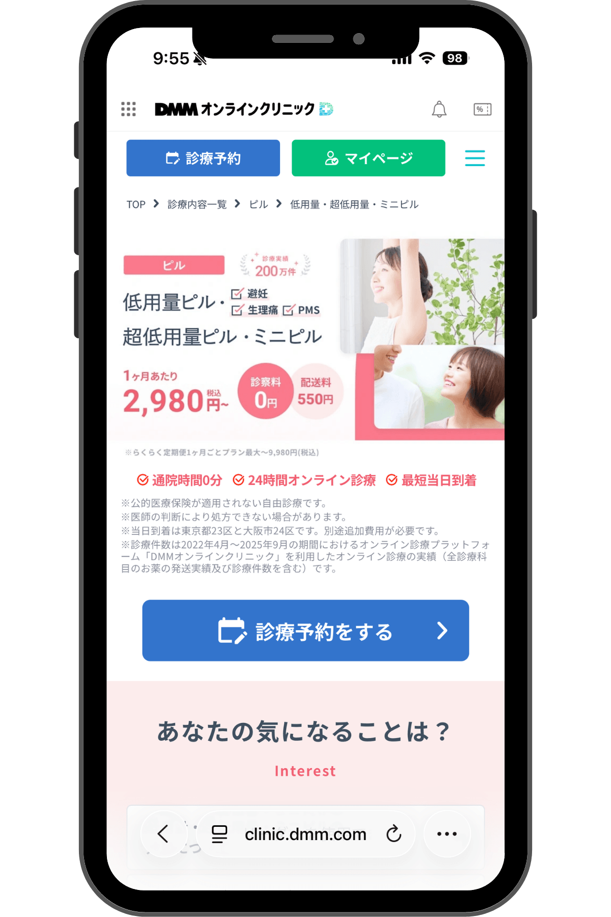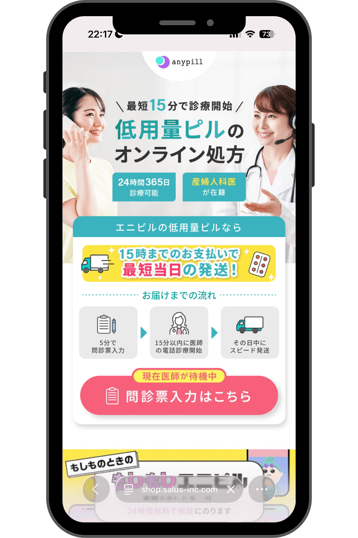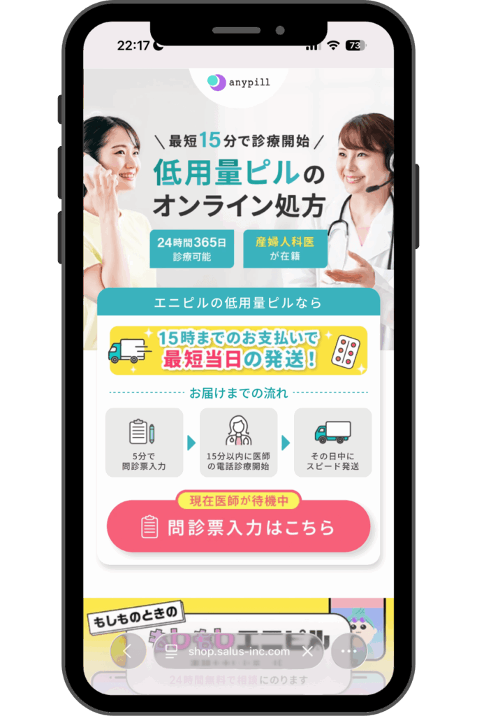 - 時間がなくても自宅から低用量ピルの処方ができる